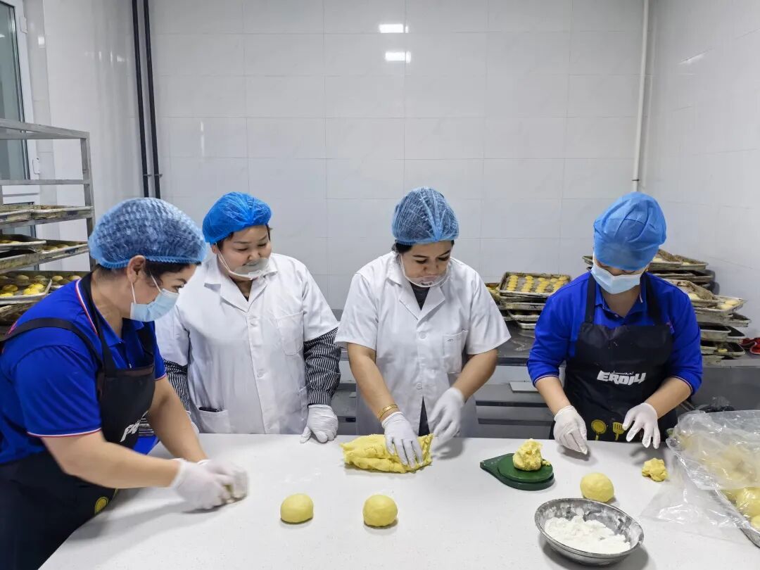 “创业不是孤军奋战,能带着乡邻一起致富才更有意义。”帕提古丽始终牢记创业初心。她的厂房优先吸纳周边村队40余名妇女就业,帮助家庭主妇蜕变为技术能手,让零基础女工掌握糕点制作与销售技巧。