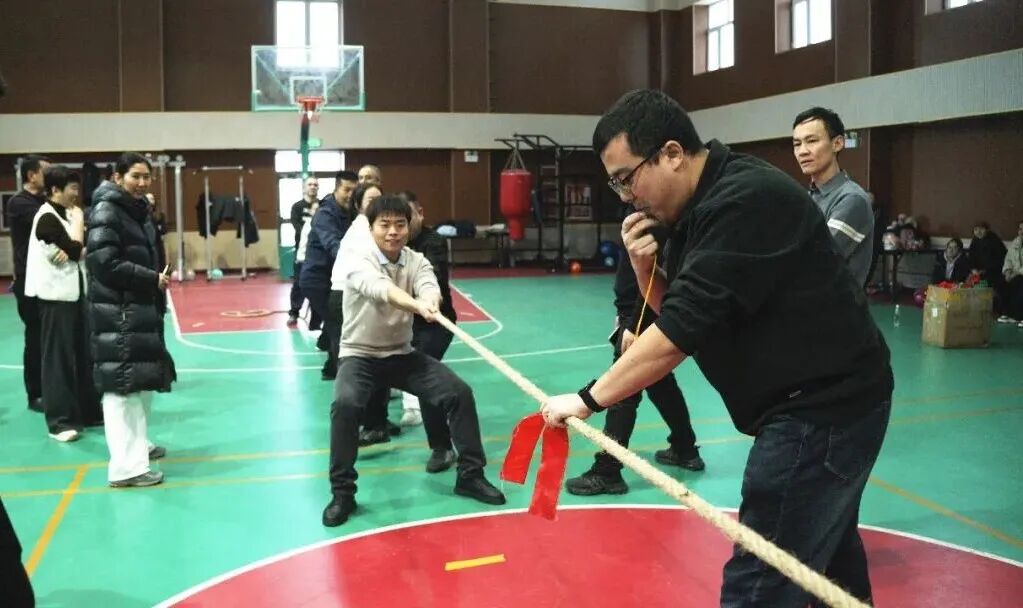 赛场上,参赛选手热情高涨。团组协作项目中,队员们敏捷接力、默契配合,展现出强劲的团队凝聚力;双人闯关项目则要求男女搭档协作完成“蒙眼喂香蕉”“两人三足”“双人背球”等趣味任务。拔河比赛将现场氛围推向高潮,队员们同心协力、奋力拼搏,赛场下助威声、呐喊声、欢笑声交织回荡,洋溢着团结奋进、喜庆祥和的节日氛围。