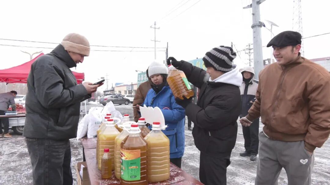 “今天来年货大集买了白面、瓜子油和甜品,人特别多、非常热闹,价格也实惠,让我满载而归。再过几天就过年了,买这些东西回家备年货,炸些馓子、麻花。”五棵树村村民杨文惠子笑着说。