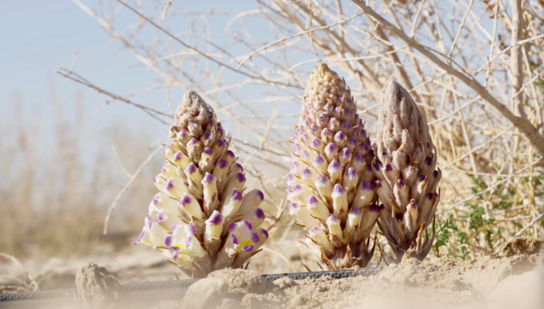 2023年,大河沿子镇向阳社区下定决心治理盐碱荒地,对接有梭梭种植经验的种植户蔡平原。在政策扶持下,蔡平原承包700亩盐碱荒地,先栽种梭梭苗固沙改土、修复生态。待梭梭林长势稳固后,2024年5月创新推行林下套种模式,在梭梭根部播种肉苁蓉种子,依托自然环境生长,不耗额外水资源、不破坏生态,实现生态种植两不误。“刚来这里全是戈壁荒滩,种啥都不成,北疆人工种肉苁蓉少,且它养生价值高、市场前景好,我就决心扎根发展。”种植户蔡平原感慨道,“管护梭梭一年多,2024年种下肉苁蓉种子,去年陆续出苗,今年迎来大面积丰收,一亩地产鲜货约200公斤,700亩地收成不错。”