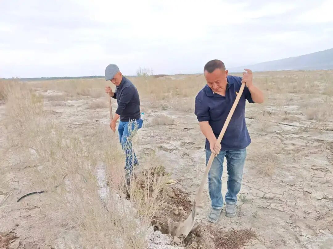 春日回暖,精河县大河沿子镇梭梭林种植基地一派丰收忙碌景象。曾经寸草不生的盐碱荒滩,如今彻底改头换面,种植户和工人抢抓时节采挖肉苁蓉,刨土起收、分拣搬运有条不紊,昔日闲置盐碱地,已然变身生态富民的“聚宝盆”。