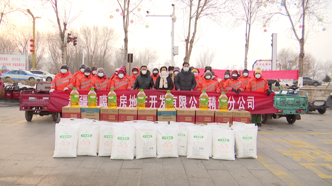 在春节即将来临之际,新疆准噶尔房地产开发有限公司精河分公司向200名一线园林、环卫工人送去了面粉、清油。对他们辛勤付出表示衷心的感谢,并叮嘱他们加强个人防护。