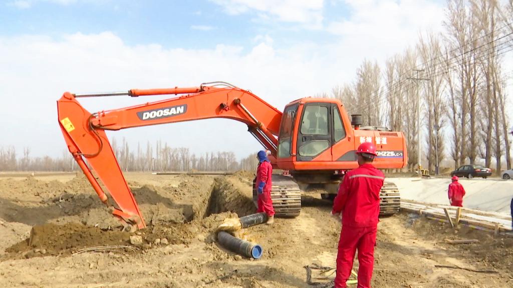 3月31日,在气化博州精河县长输管线建设项目现场,挖掘机挥舞着机械臂,在隆隆的作业声中进行管沟开挖,数百米长的高压管道已经焊接成型,身穿防护工作服的焊工们,忙着焊接其余的无缝钢管。
