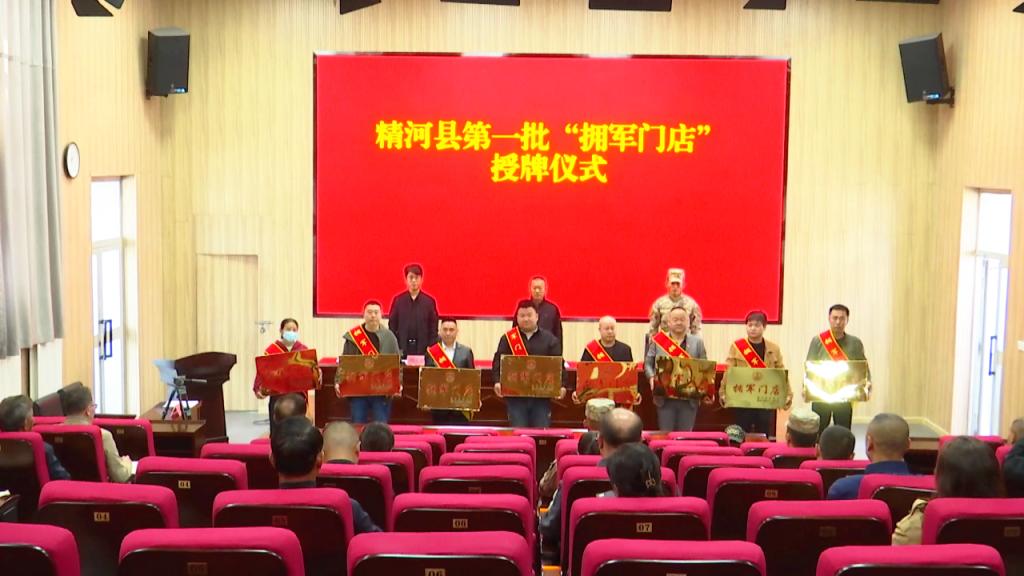 4月24日,精河县举行第一批“拥军门店”授牌仪式。县委副书记、政法委书记张建秋,县人武部生产连少尉排长张传耀出席授牌仪式,精河县双拥工作领导小组部分成员单位负责人、各乡镇场(街道)分管领导,部分“拥军门店”负责人、现役军人、退役军人参加授牌仪式。