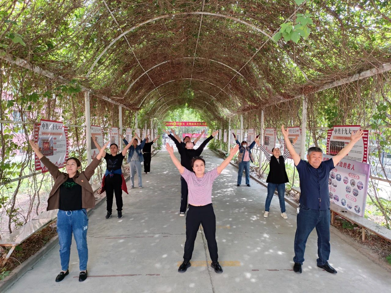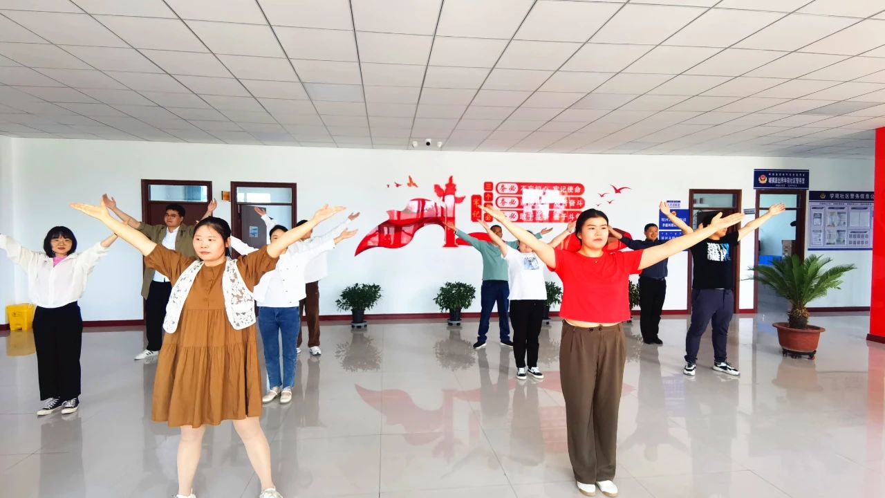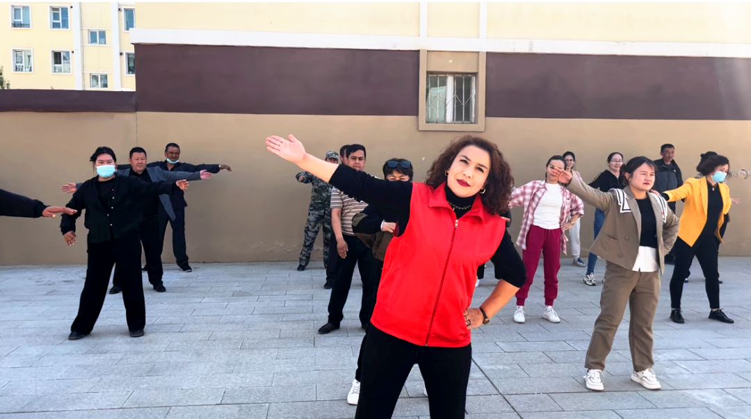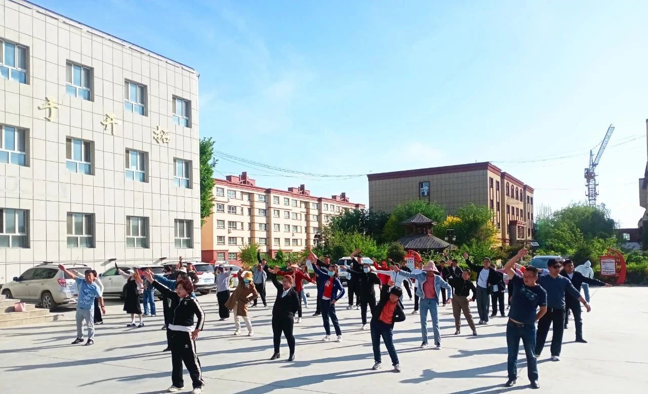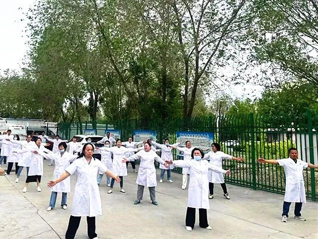 5月16日,在精河县卫健委办公楼院内,伴随着音乐的响起,干部职工跟随音乐一起运动,伸展颈肩腰,活动手脚,舒缓身体,释放压力。
