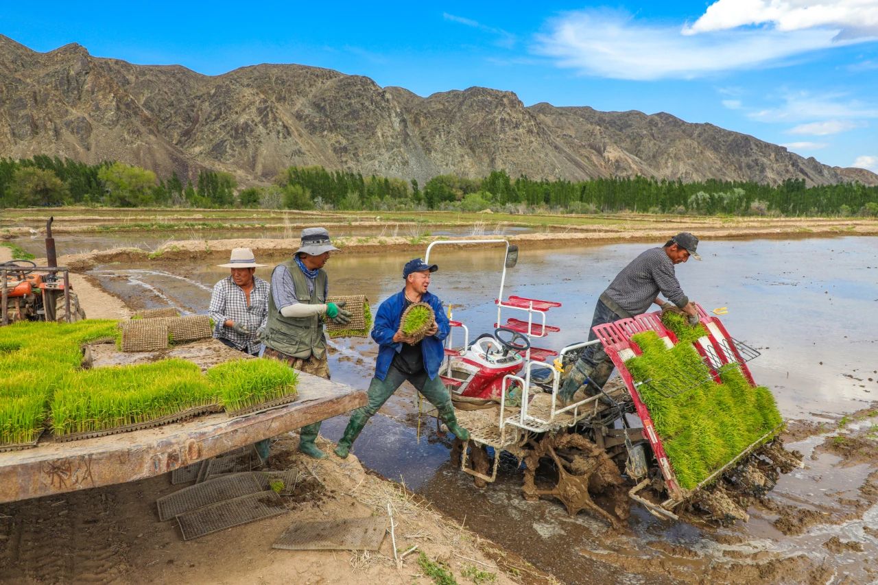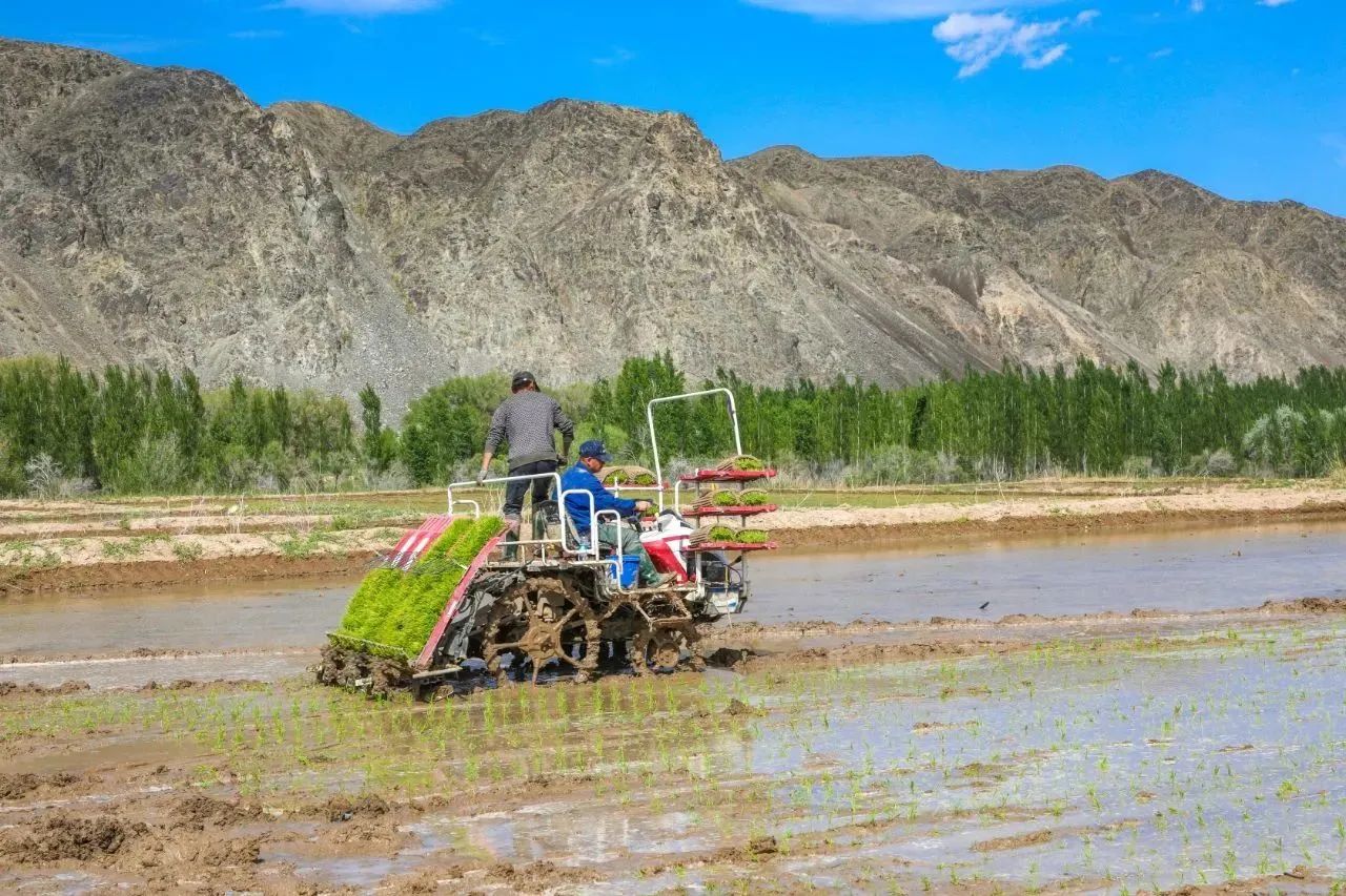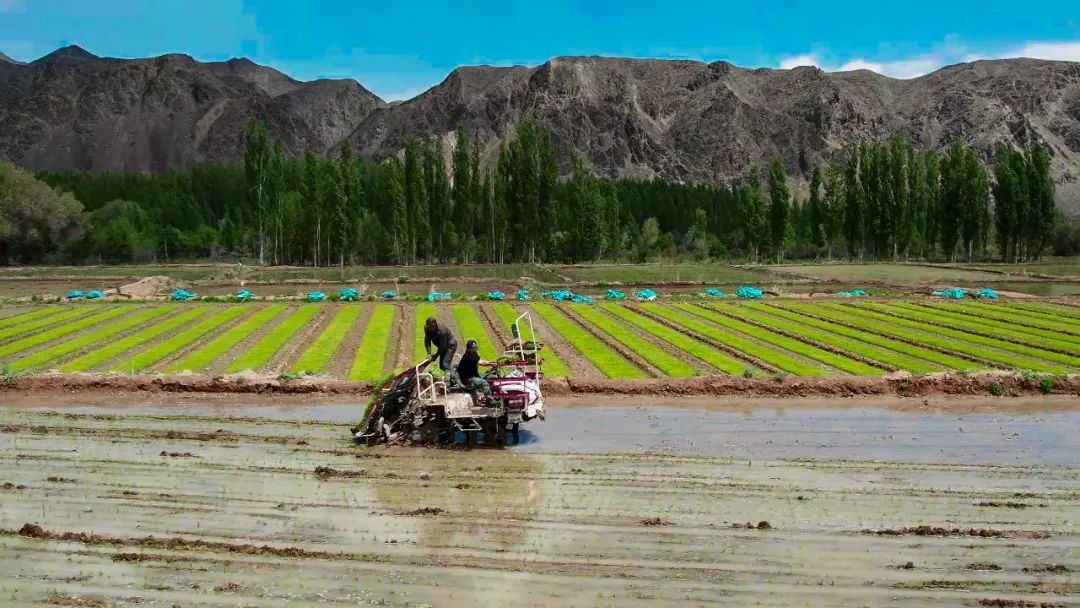 眼下,正值早稻插秧关键期,精河县种植户抢抓农时,开展机械化插秧,田间地头呈现一派繁忙景象。