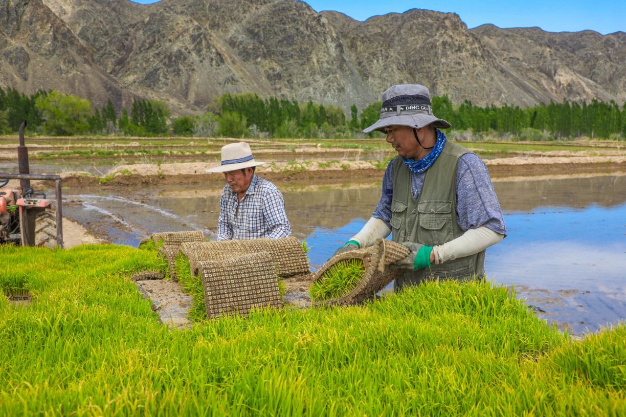 方永正说:“今年我种植了1000亩水稻,每天有两台插秧机同时作业,预计一周左右可以完成插秧 。”方永正的稻田位于天山支脉婆罗科努山北麓库苏木齐克山区,其独特的气候、土壤、水资源条件给水稻种植提供了良好的生长环境。“这里水质有机质含量高 ,昼夜温差大,病虫害少,种出的大米口感香甜,深受顾客喜爱。”方永正说。