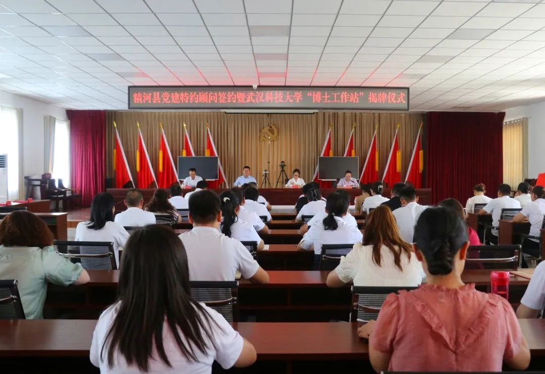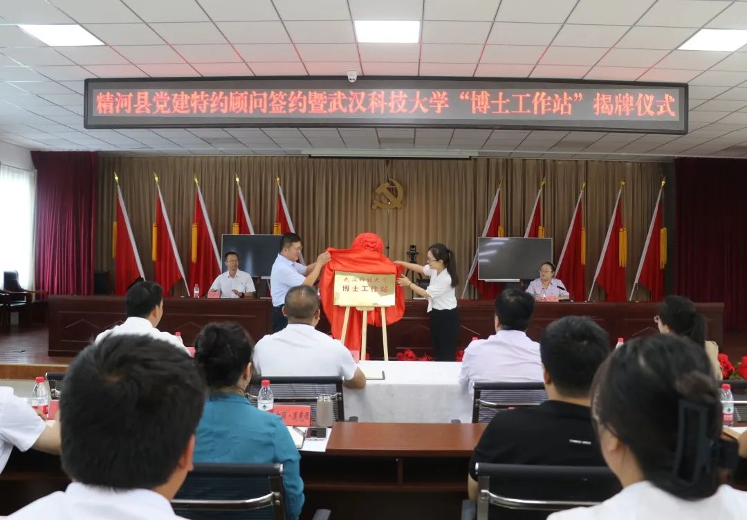 8月3日,精河县举行党建特约顾问签约暨武汉科技大学“博士工作站”揭牌仪式。县党委常委、组织部部长李航出席仪式并讲话,武汉科技大学发展规划处副处长、博士王媛媛与精河县就提升党建工作进行签约,共同为武汉科技大学“博士工作站”揭牌。