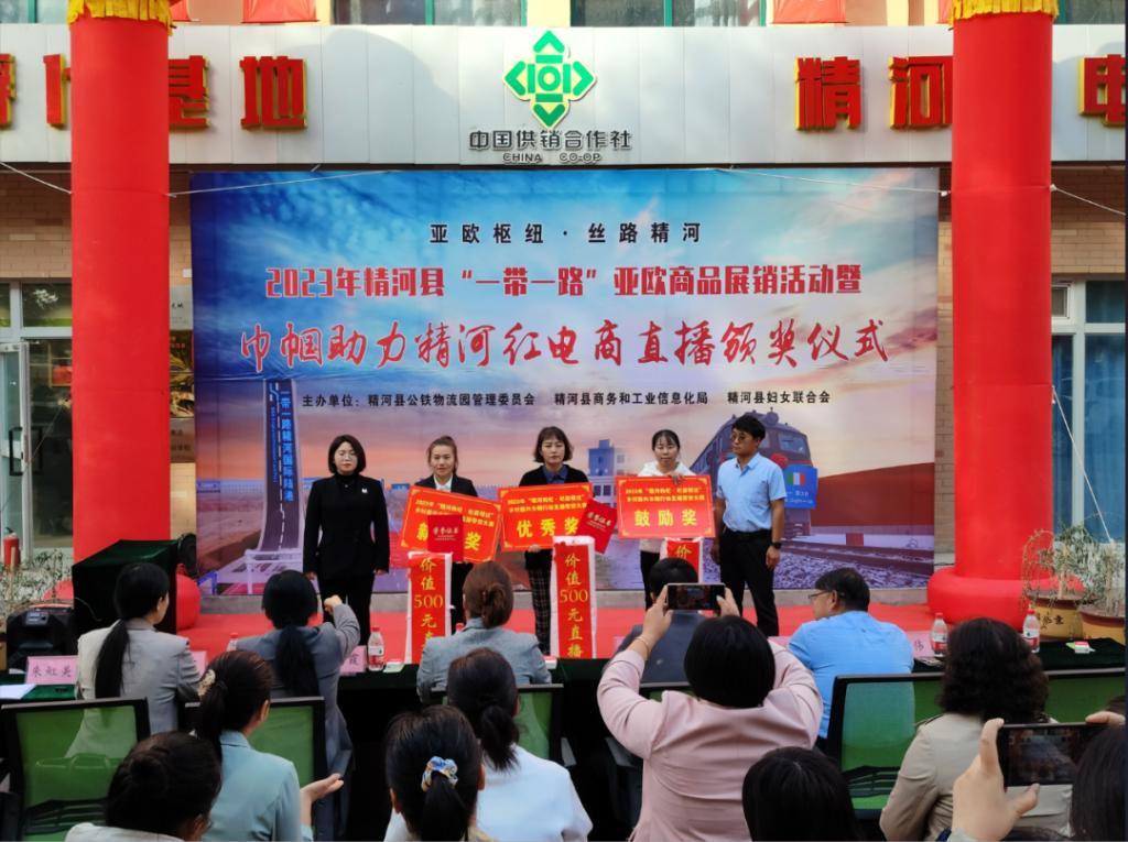 近日,2023年精河县“一带一路”亚欧商品展销活动暨巾帼助力精河红电商直播颁奖仪式在精河县电子商务公共服务中心举行。县政协党组成员、副主席邓海红出席活动,各乡镇场(街道)妇联主席、专职副主席及县直部分单位妇委会主任及电商达人参加活动。