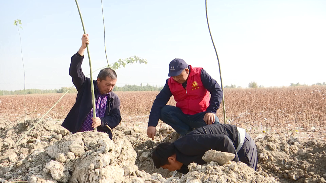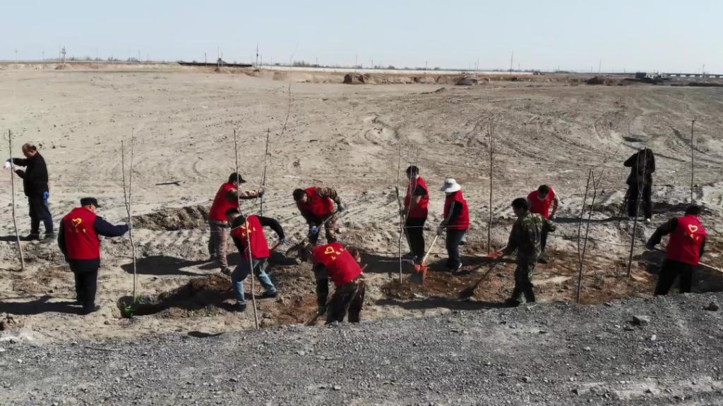 10月26日,在精河县赛马场南、八家户农场牧业二队义务植树造林点,县直机关单位的干部们正在栽植榆树和紫叶稠李。大家相互配合,密切协作,干劲十足,挖坑、扶苗、培土、浇水,每个环节都认真细致、精心栽植。经过大家的辛勤努力,一棵棵新栽种的杨树苗整齐地排列着,展现出一片蓬勃生机。
