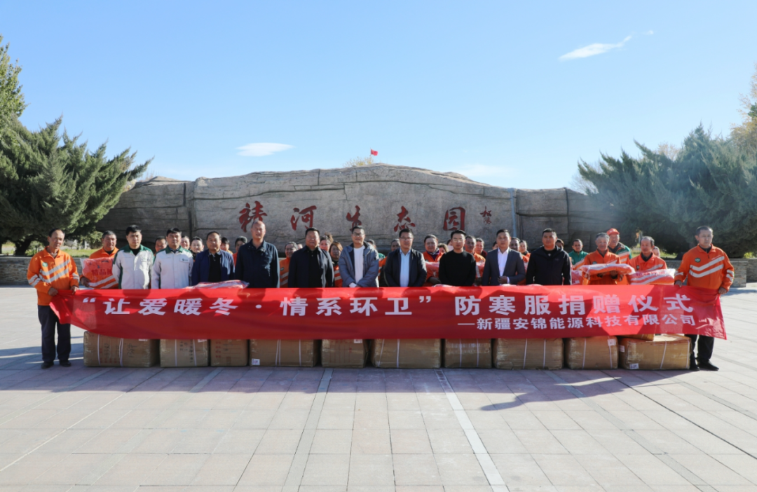 11月2日,“让爱暖冬·情系环卫”防寒服捐赠仪式在精河县生态园广场举行。新疆安锦能源科技有限公司将价值12万元的300件冬季防寒服送到了精河县环卫工作者手中。
