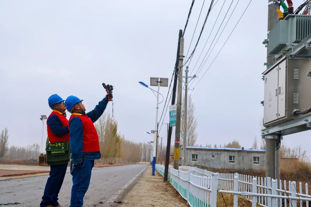 11月24日,在精河县茫丁乡肖乃村的村间道路旁,电力工人正在使用专业设备对沿线线路进行巡视。“我们正在对辖区内的3条线路进行巡视。在巡视过程中,我们会对变压器、电线杆等设备进行全方位检查,如发现隐患,会第一时间记录并消除。”精河镇供电所配电运营工田新武说。