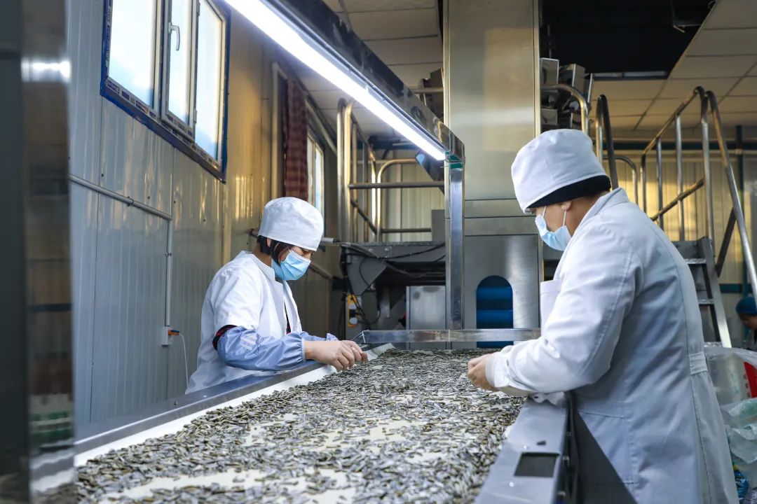 近日,记者在茫丁乡葵方提食品厂生产车间看到,车间的工人们正忙着挑选、筛分瓜子,随着自动化履带的传送,零散的瓜子在自动给袋机的操作下装袋、打码、真空包装好后,准备送往各销售网点。“我们今年9月底开工,正抓紧时间节点,开足马力完成生产订单任务,预计明年2月前结束生产任务。”工人塔吉古丽·艾再孜介绍说。