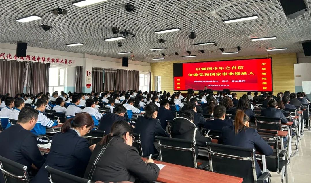 近日,精河县委副书记、县长库尔曼江来到精河县初级中学,结合学习贯彻习近平新时代中国特色社会主义思想,以“围绕坚持四个自信,做强国少年”为题,为全校师生讲授思政课。县人民政府副县长亚里坤·阿地里主持。