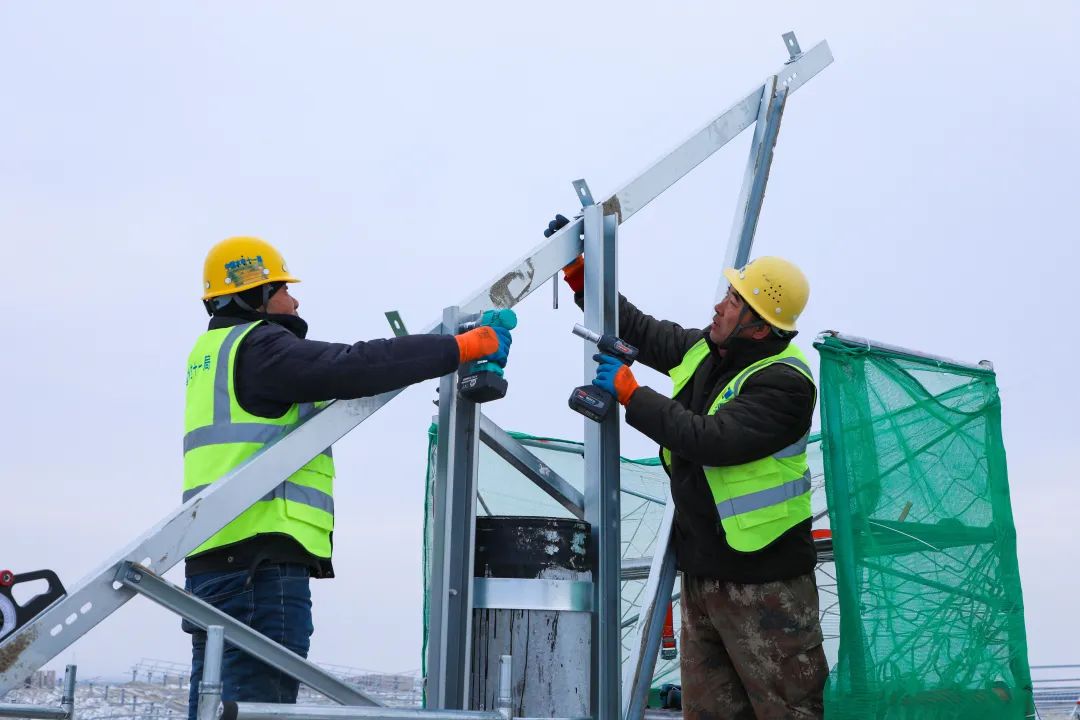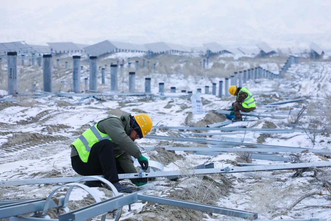 现场技术员陶克宾说:“我们是按主架和支架,两个工序同步进行,11月中旬开始施工,目前已经安装6个方阵的支架、两个方阵的组件,预计2024年4月完成。”精河新华新能源有限公司“光热储能新能源”一体化基地项目总投资61.4亿元,于2022年7月4日列入新疆维吾尔自治区第二批市场化并网新能源项目清单。