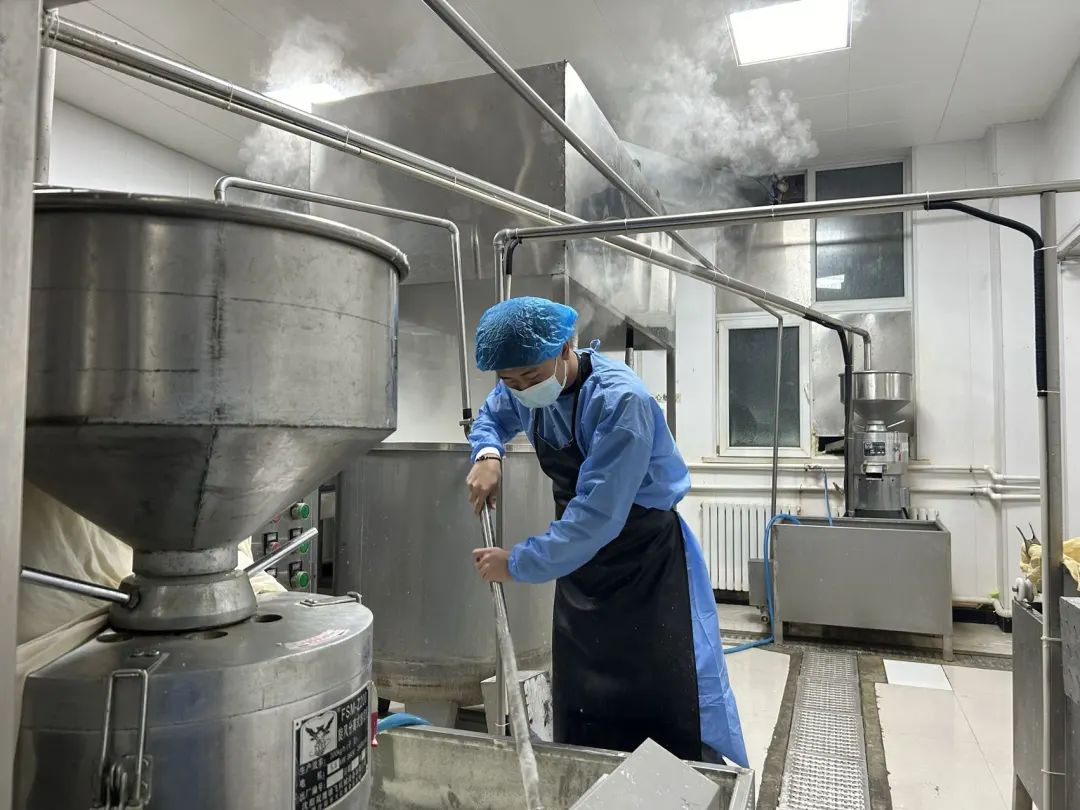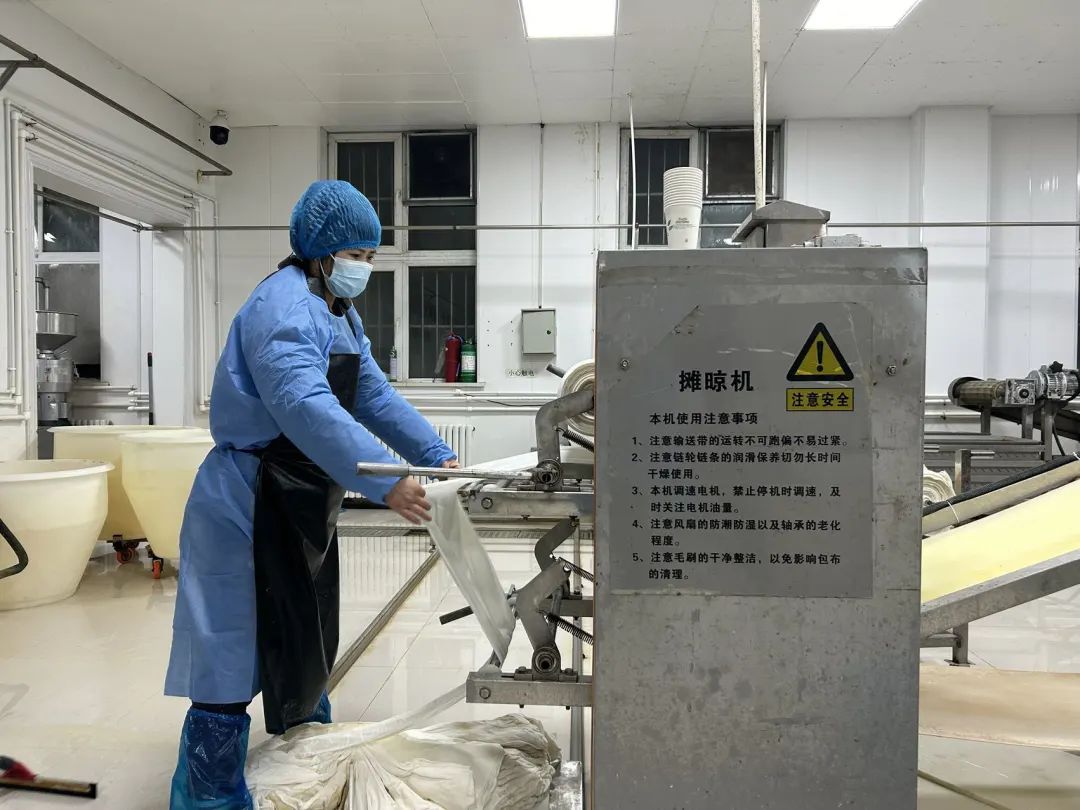 元旦过后,精河县各企业火力全开,工人们奋战在一线,加紧生产,全力满足市场需求,力争实现新年“开门红”。在位于精河县茫丁乡五棵树村的新疆旺实食品加工有限公司加工厂,浓浓的豆香味儿扑面而来。工人们身着工作服、佩戴口罩,抓紧进行豆皮生产作业,清洗浸泡黄豆、磨浆、滤浆、煮浆、压制,再到包装、发货,大家分工明确,工作井然有序。