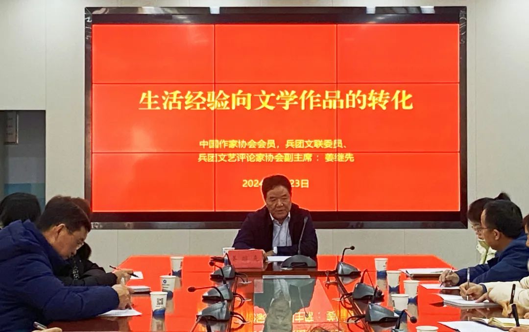 近日,由博州文联、精河县委宣传部、精河县文联联合举办的“文润精河 ‘艺’起同行”文学创作培训班在县直机关综合楼会议室开班。培训邀请中国作家协会会员、兵团文联委员、兵团文艺评论家协会副主席姜继先授课。来自精河工业园区、各乡镇场(街道)、县直机关单位的30余名文学爱好者参加培训。