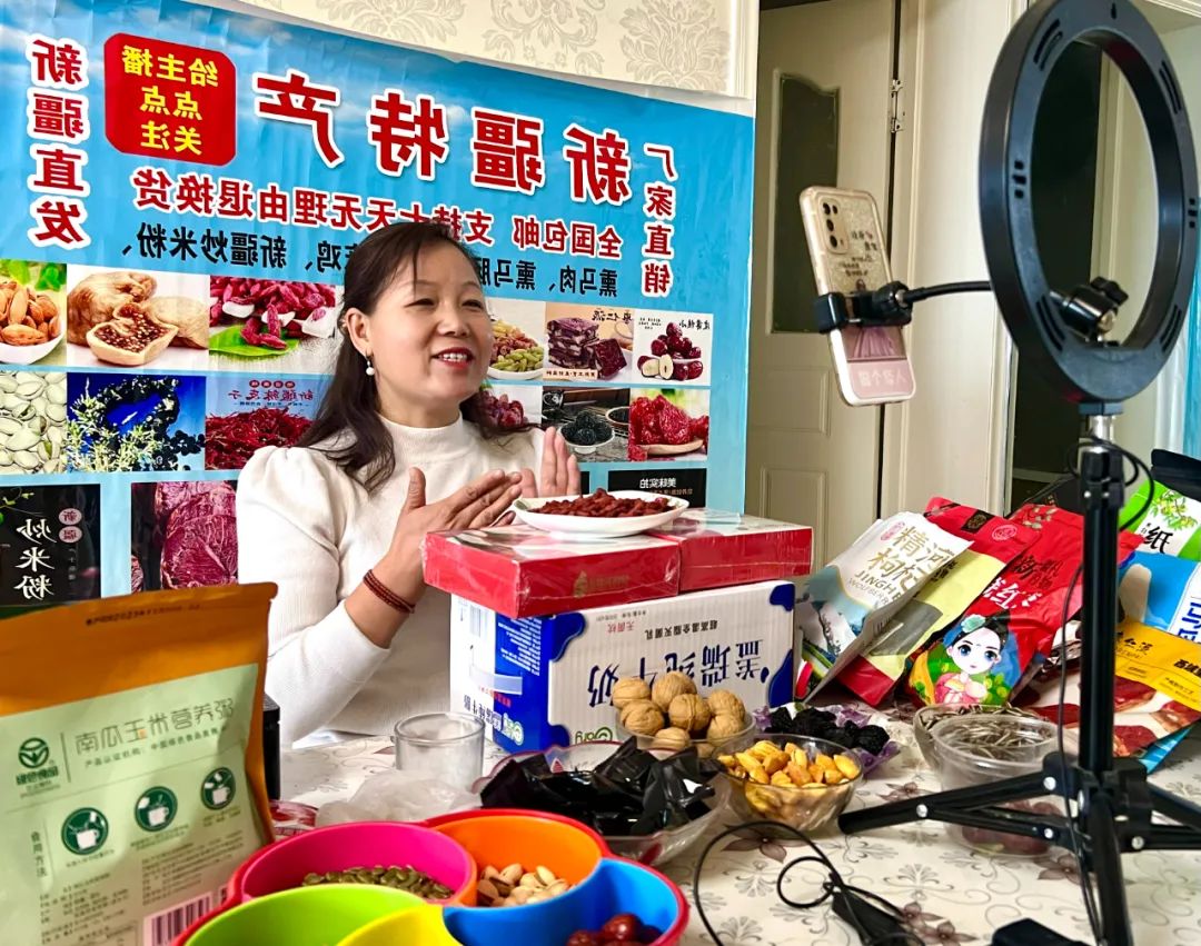 “咱们精河不仅有品质卓越的枸杞,精河的瓜子、蜂蜜等特产一样优秀,今天给大家推荐的是精河的瓜子……”作为青年创业者的一员,王思莹做电商直播已有3年,逐渐掌握了直播技巧的她,直播带货销售额越来越高。“通过不断地摸索,我去年的直播收入达到了10万元,今后,我还会继续学习,不断精进自己的直播技能。”王思莹说。精河县电子商务公共服务中心于2015年投入运营,集电商咨询、创业入驻、运营孵化、网络宣传、产品展销、主播培养带货等为一体的多功能开放型电商孵化基地。2023年以来,中心结合产业特色和业务需求,有效整合相关资源,在做好线上线下市场销售的同时,积极打造独具特色的直播间,加强直播人才队伍建设,借助抖音、快手等电商平台,全力提升精河县本土系列产品的市场占有率和品牌影响力。精河县电子商务公共服务中心主任马树军介绍:“2023年,中心打造了4个直播间,主要销售亚欧商品和本地农副产品,去年,电商总销售达到了1亿元。”