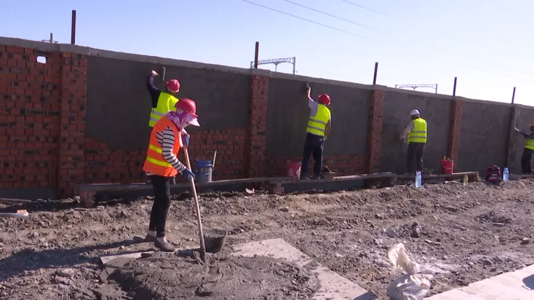 新疆铁道勘察设计院有限公司精河项目部经理何尚海说:“我们正在做的是轨道工程的上渣整道和附属房屋排水抹面、围墙抹面喷漆工作。”
