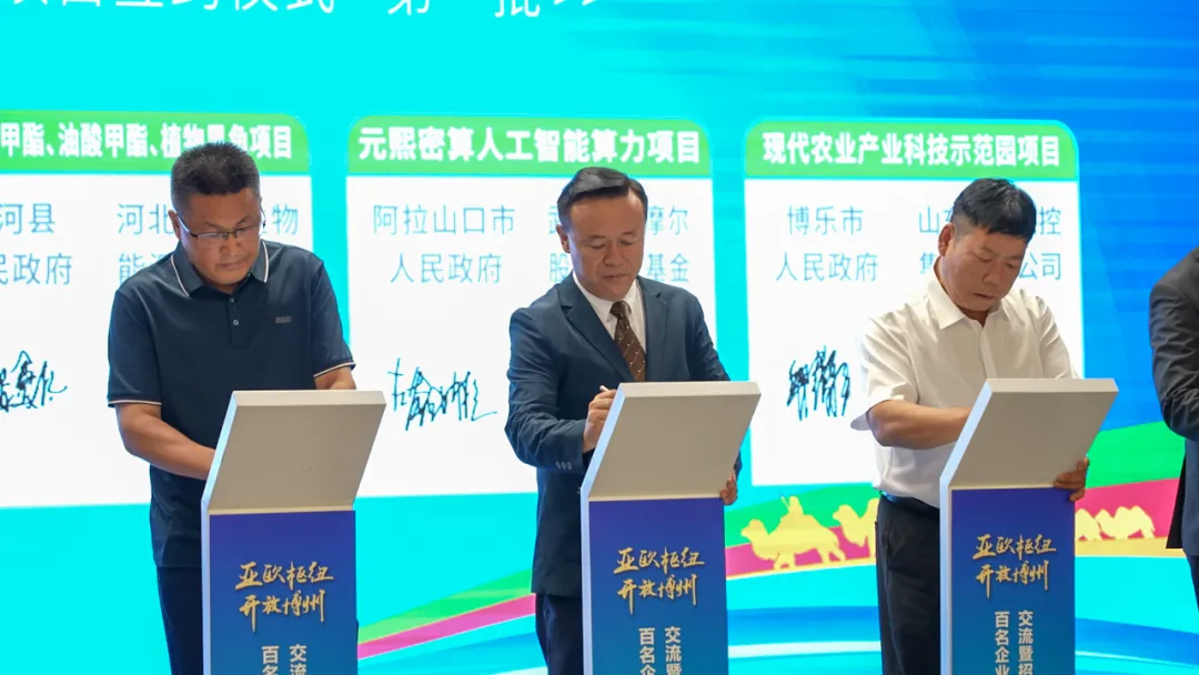 在推介会后的招商引资项目签约仪式上,库尔曼江、赵萍代表精河县分别与河北隆海生物能源股份有限公司、河南展森化工有限公司、新疆强州玻璃钢管业有限公司等签订了投资协议。其中,河北隆海生物能源股份有限公司将在精河投资金额为1.2亿元,计划建设年产5万吨脂肪酸甲酯、油酸甲酯、植物黑角项目;河南展森化工有限公司将在精河投资1亿元,计划建设年产3000吨磷酸三丁酯、3000吨甲萘胺项目;新疆强州玻璃钢管业有限公司将在精河投资1.1亿元,计划建设玻璃纤维螺旋肋增强管道项目。