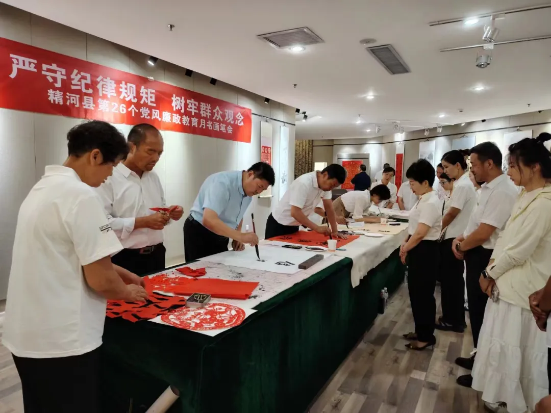 7月10日,由精河县纪委监委、县委宣传部、县文体广旅局、县文联主办,县美术馆承办的“严守纪律规矩 树牢群众观念”精河县第26个党风廉政教育月书画笔会活动在县美术馆举办。50余名党员干部和书画作品爱好者参加了此次活动。