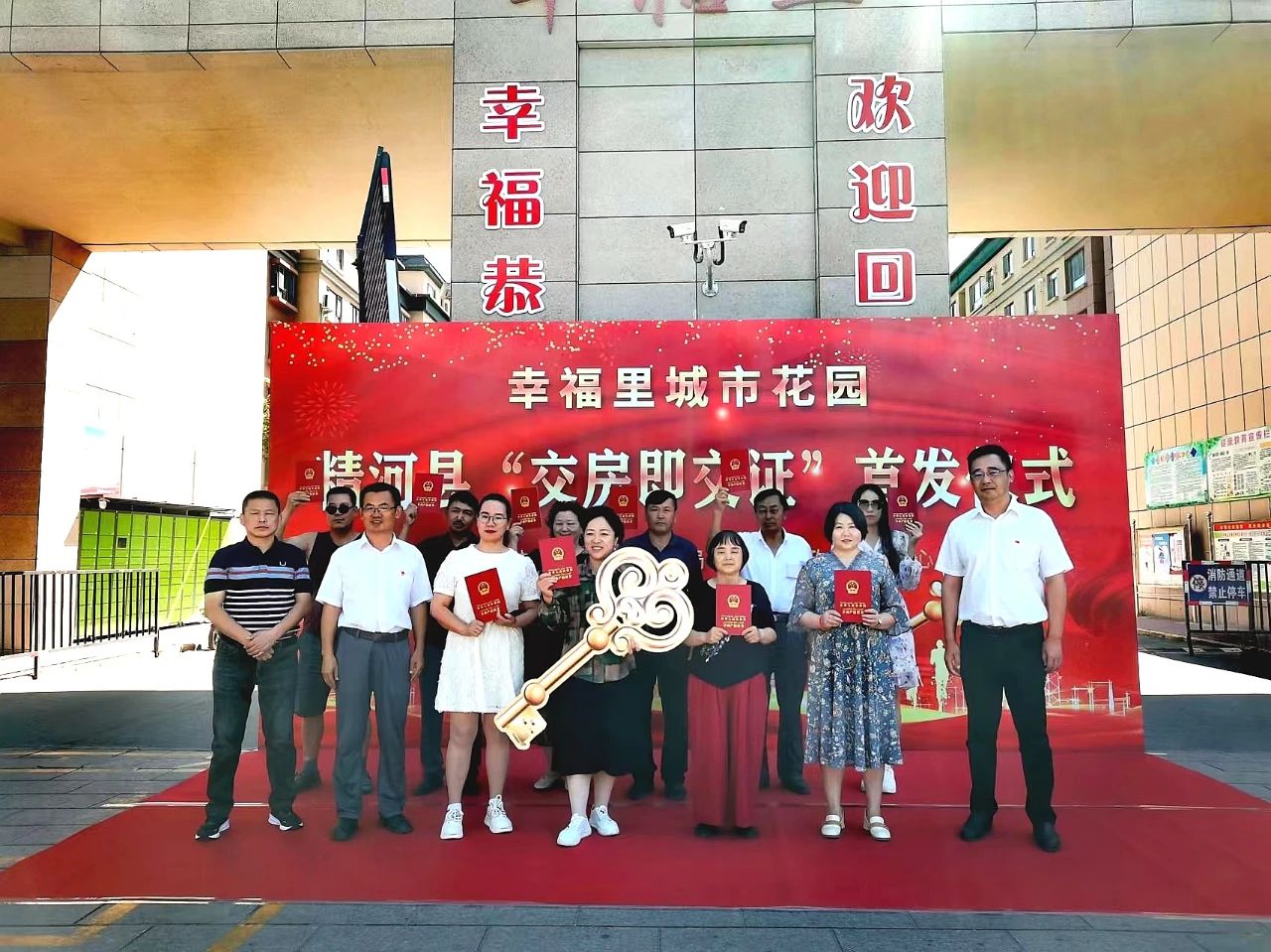 近日,由精河县自然资源局、县政务服务中心主办的精河县“交房即交证”不动产登记证书首发仪式在精河镇幸福里城市花园小区举行。