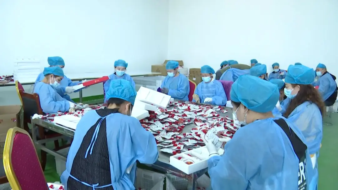 新疆杞明星枸杞产业发展有限公司,通过整合优势资源,与精河县天山果业农业科技有限公司达成产销合作,推出了蕴含中国传统节日风俗和寓意的精河枸杞大礼包。在该公司生产车间内,工人们正紧张地打包枸杞产品,装盒、封装、贴标签,待发的礼包堆满了工作间。车间主任许莲芳介绍:“为迎接中秋销售旺季,上周起,生产车间就进入了正式包装环节,每天约有20多名工人紧锣密鼓地包装、打包、托运。目前,库房已预备不同价位的礼盒3000多份。接下来,我们将全力以赴包装生产,确保在中秋节前完成所有订单。”