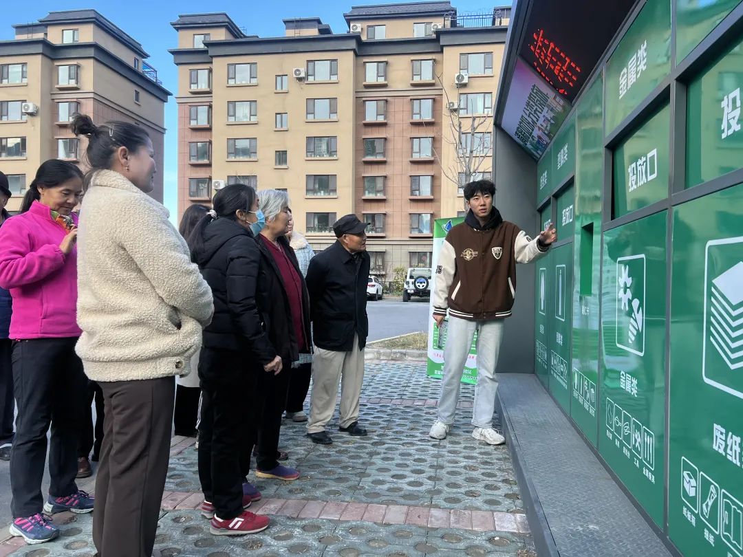 11月13日,在精河镇彩虹社区幸福里小区,一抹绿色格外引人注目,那是新设立的智能垃圾回收箱。它吸引了众多居民的目光,大家纷纷围聚过来。现场,社区志愿者热情耐心地向居民详细讲解智能垃圾回收箱的使用方法,以及可以投入其中的各类物品。