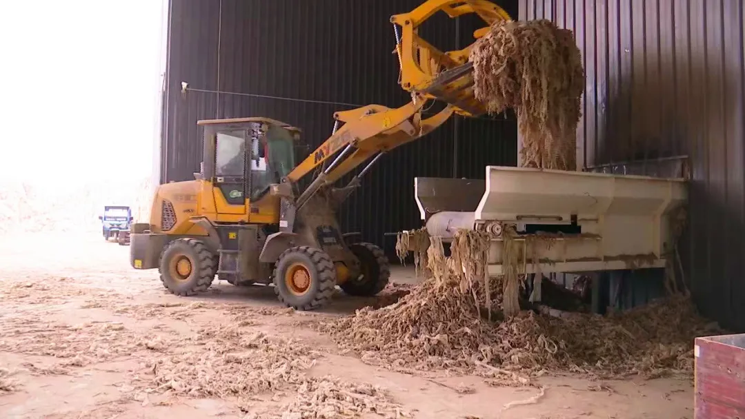 近日,记者在中农博西(精河)科技有限公司厂区内看到,回收的废旧农膜堆积如山,生产车间内排列整齐的设备全速运转,废旧农膜和秸秆经过粉碎、干搓、风选、搅拌、热熔、密炼等一系列精细化的处理工序,最终转变成实用的托盘,从而实现回收再利用。