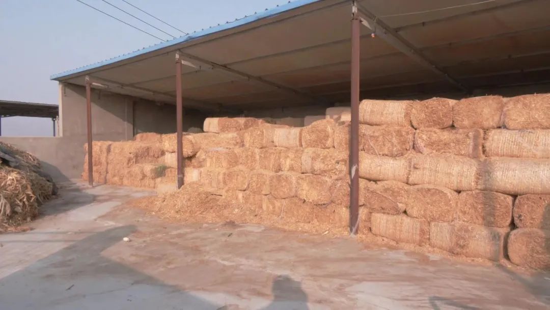 在哈尔托热村养殖户叶尔博里·哈仁依木汗的院子里,同样堆满了苜蓿、麦草、玉米秸秆等饲草料。他早早开始粉碎自家地里收获的秸秆和棉秆,在村干部的协助下,每日储备量可达数十公斤。