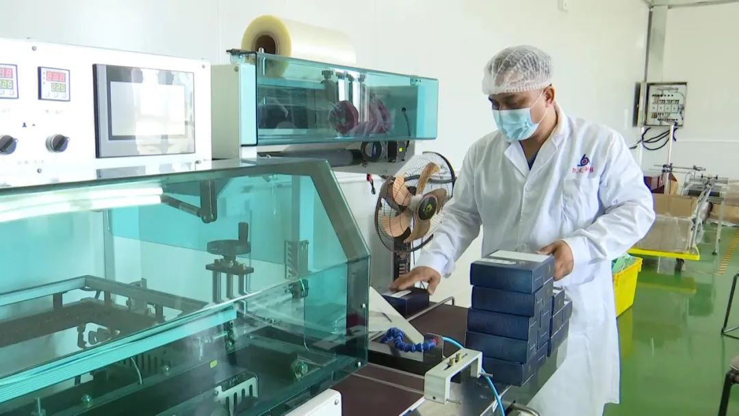 在精河凯文科技有限公司的生产车间,生产线高速运转,工人们忙碌地将一袋袋固体饮料装箱,这些产品即将运往国外市场。据该公司副总经理肉孜·吾斯曼介绍,公司目前有哈萨克斯坦和吉尔吉斯斯坦的订单,正抓紧时间生产,确保年底发货。