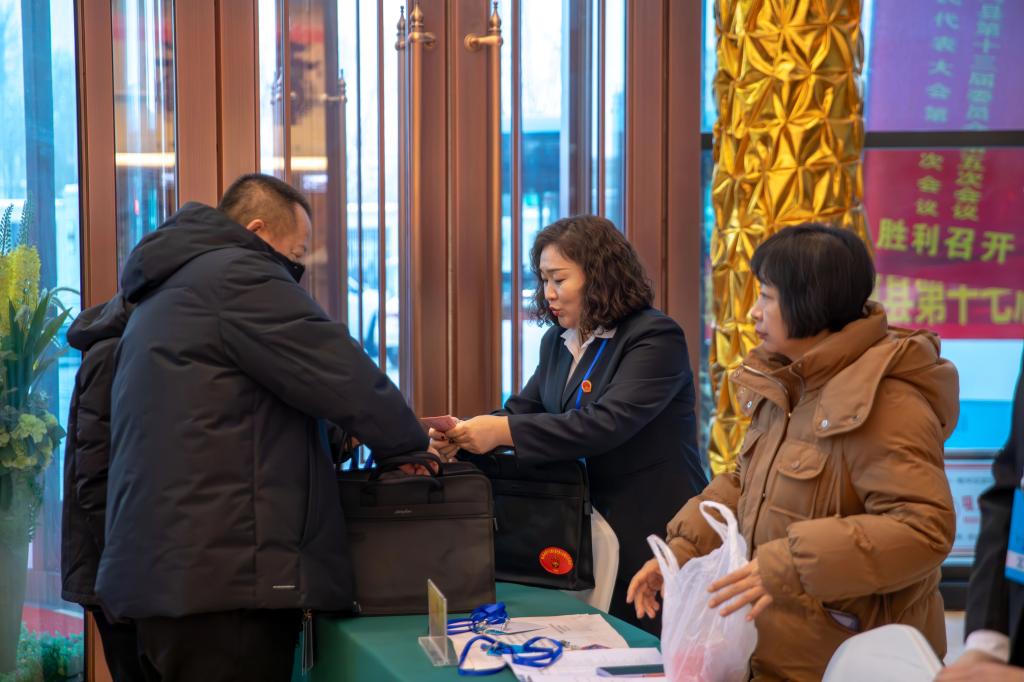 在人大代表报到现场,代表们在各代表团工作人员的指引下有条不紊地领取相关证件和会议材料,整个流程简洁高效,秩序井然。