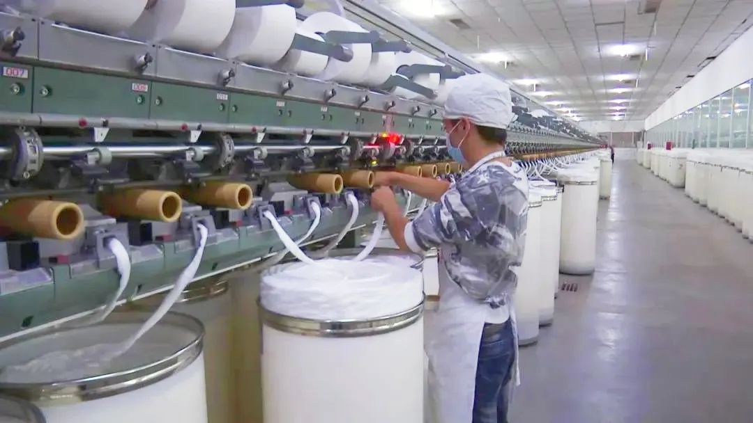近日,在位于精河工业园区的新疆鹏泰润织纺织有限公司的生产车间内,工人们正在紧张有序地忙碌着,全力投入生产作业。一排排自动化纺织设备飞速运转,发出隆隆的声响,纱线在机器的运作下交织成网。