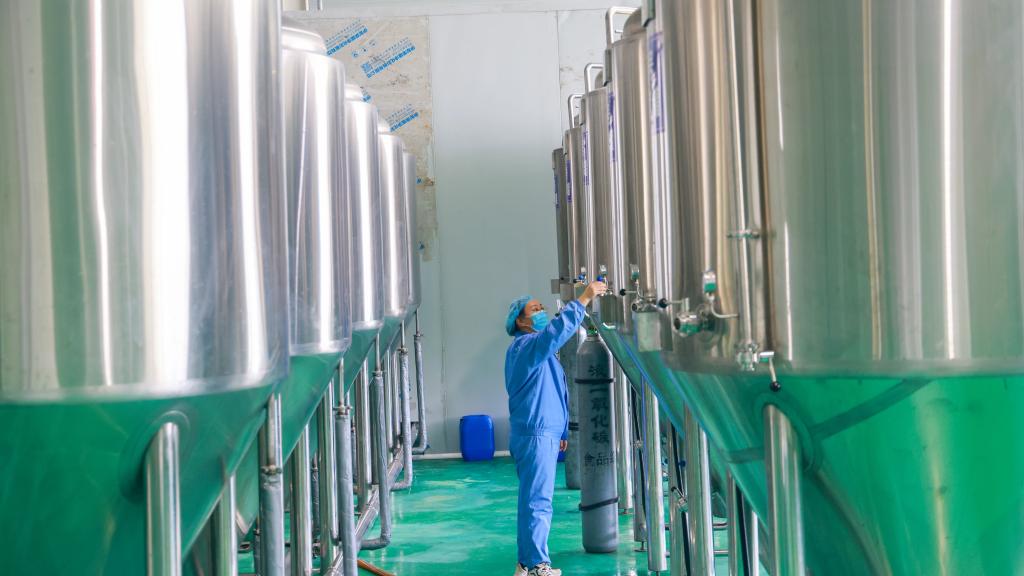 近日,记者走进精河县天山果业农业科技有限公司看到,在干净宽敞的生产车间内,技术工人正在检查发酵数据,查看麦汁入罐情况。该公司车间技术人员张伟红说:“公司创新研发的红枸杞、黑枸杞精酿啤酒系列产品自3月投产以来已生产18吨,市场反响较好,预计4月中旬即可完成罐装上市。”