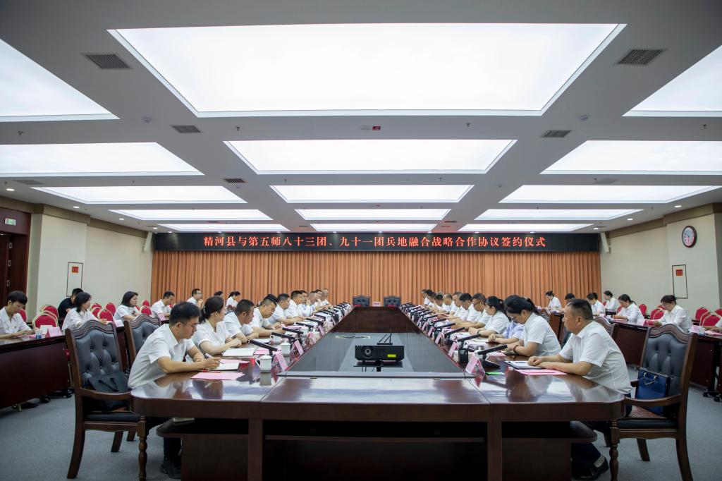6月20日,精河县与第五师八十三团、九十一团兵地融合战略合作协议签约仪式在县商务中心举行。精河县委副书记、代理县长居马什·马力克,第五师八十三团党委副书记、团长孙延星,九十一团党委副书记、团长邓怀贵出席签约仪式。县领导高文生、努尔吐烈·杰尼斯别克、赵永海,第五师八十三团、九十一团相关领导及精河县直相关部门主要负责同志参加签约仪式。
