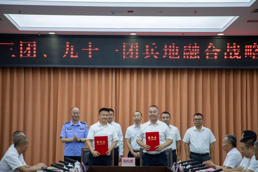 随后,精河县分别与第五师八十三团、九十一团签订了兵地融合战略合作协议并合影留念。