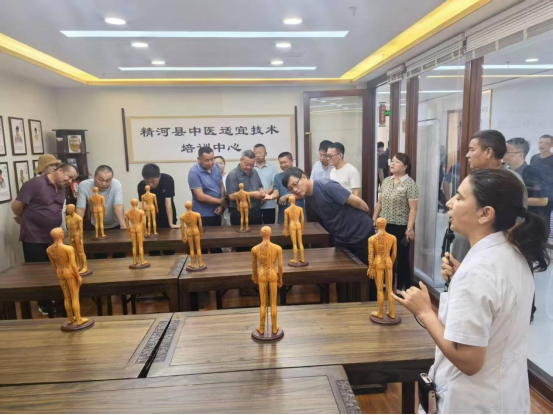 在精河县中医药文化科普教育基地内,大家深入了解中医药文化精髓和中医养生理念。在互动体验环节,学员们跟着指导老师学习中医养生操八段锦,在一招一式中感受中医药文化的独特魅力,进一步增强了传承弘扬中医药文化的责任感。