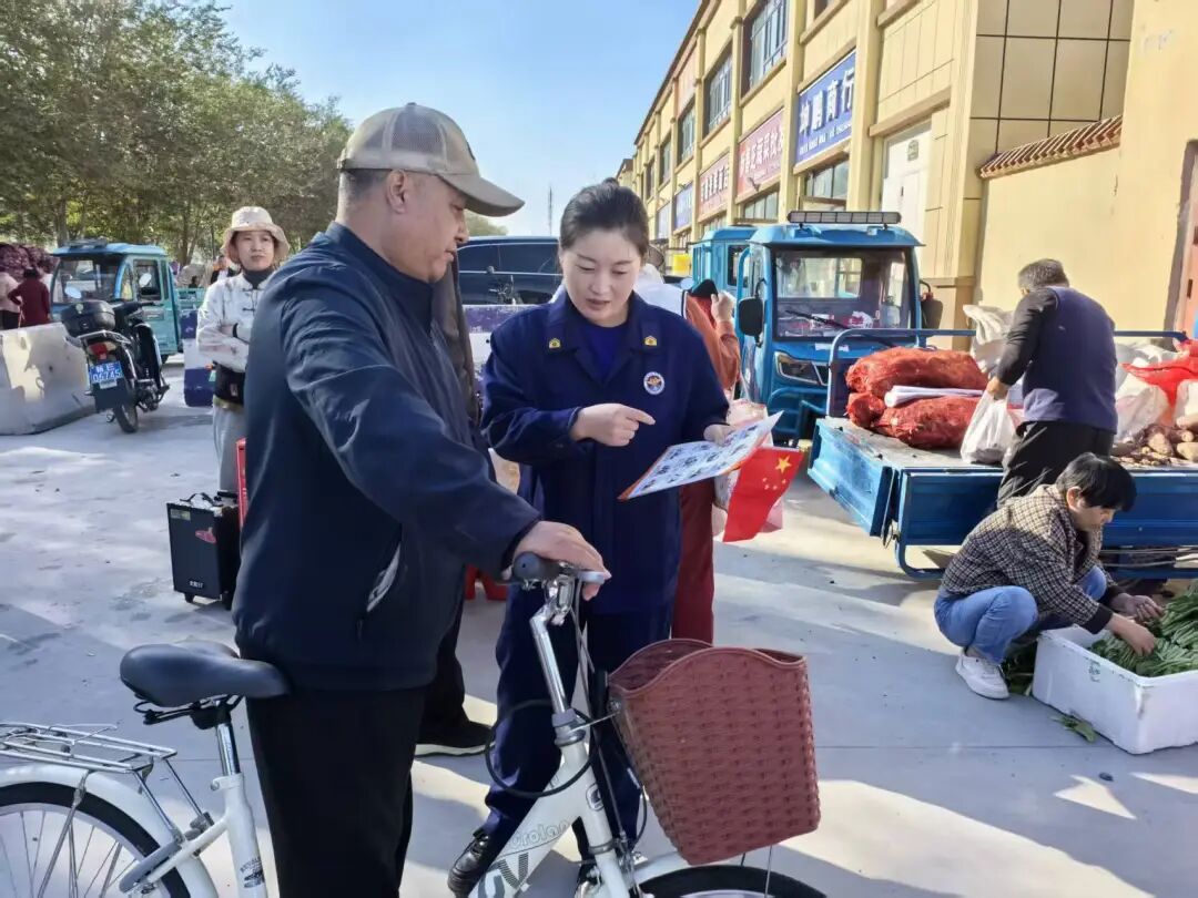 活动当天,集市上热闹非凡,摊位林立、人流涌动。消防宣传员采取“发放资料+现场讲解”的双向模式,向过往群众细致剖析生活中常见的火灾隐患。“电瓶车切勿推入单元楼,更不能私拉乱接电线充电”“消防通道是生命通道,绝不能堆放杂物堵塞”。针对集市内使用明火、电器的摊主,宣传员逐一上前重点普及安全知识,通过直白的提醒,让安全意识深入人心。