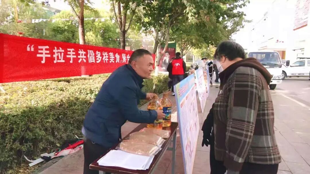 本次活动还邀请了中央储备粮精河直属库有限公司、精河县粟千米良粮食购销有限公司和购销相关企业。在展示区前,企业工作人员一边展示小麦、优质米面油样品,一边给群众宣传怎样挑选安全粮油。