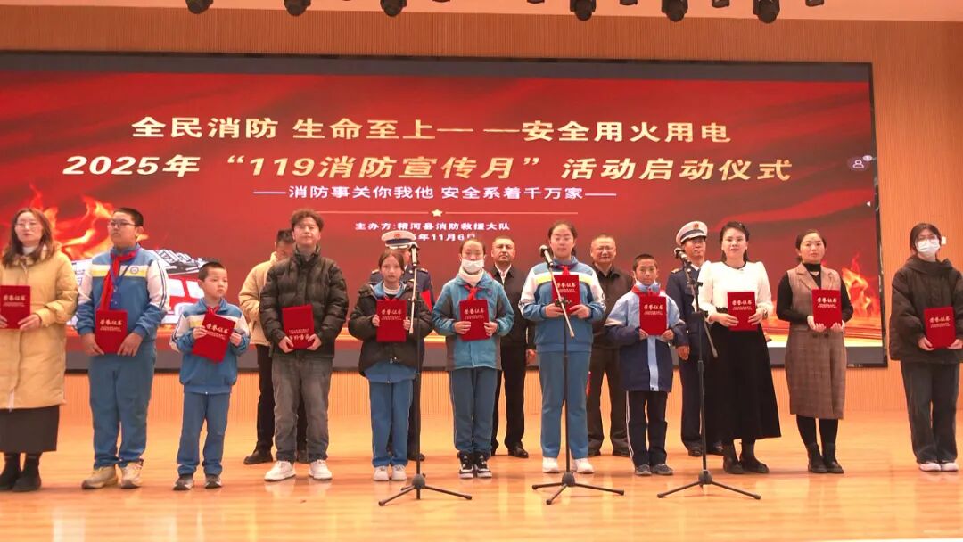 启动仪式上,开展了精彩的文艺表演,随后举行了2025年消防宣传月主题绘画作品征集活动颁奖仪式。与会领导为获奖人员及新聘任的消防宣传公益使者颁发了荣誉证书与聘书。消防宣传公益使者代表、获奖学生代表先后登台发言,并共同宣读《安全用火用电承诺书》。县应急管理局对《精河县消防宣传月活动方案》进行了解读。