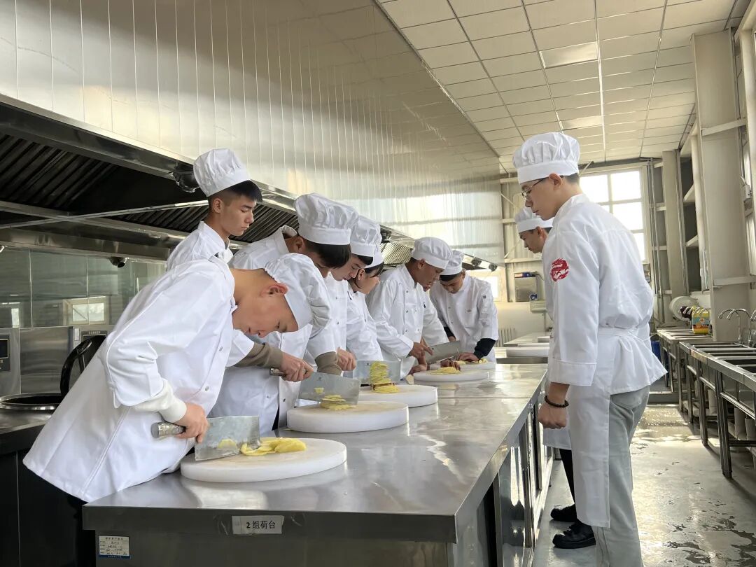 与汽车维修专业的严谨专注不同,中式烹饪专业的课堂里充满“烟火气”。在烹饪教室里,学生们正按照老师教授的方法,小心翼翼地切着土豆丝。学生外力·合力力分享道:“今天讲了烹饪课,老师给我们教了土豆丝的做法,还上手进行了实操训练。接下来,我计划好好学习烹饪技术,争取自己开一个餐厅。”