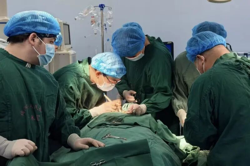 11月22日,魏正阔(左二)和当地医生一起为患者实施手术。朱贤哲摄