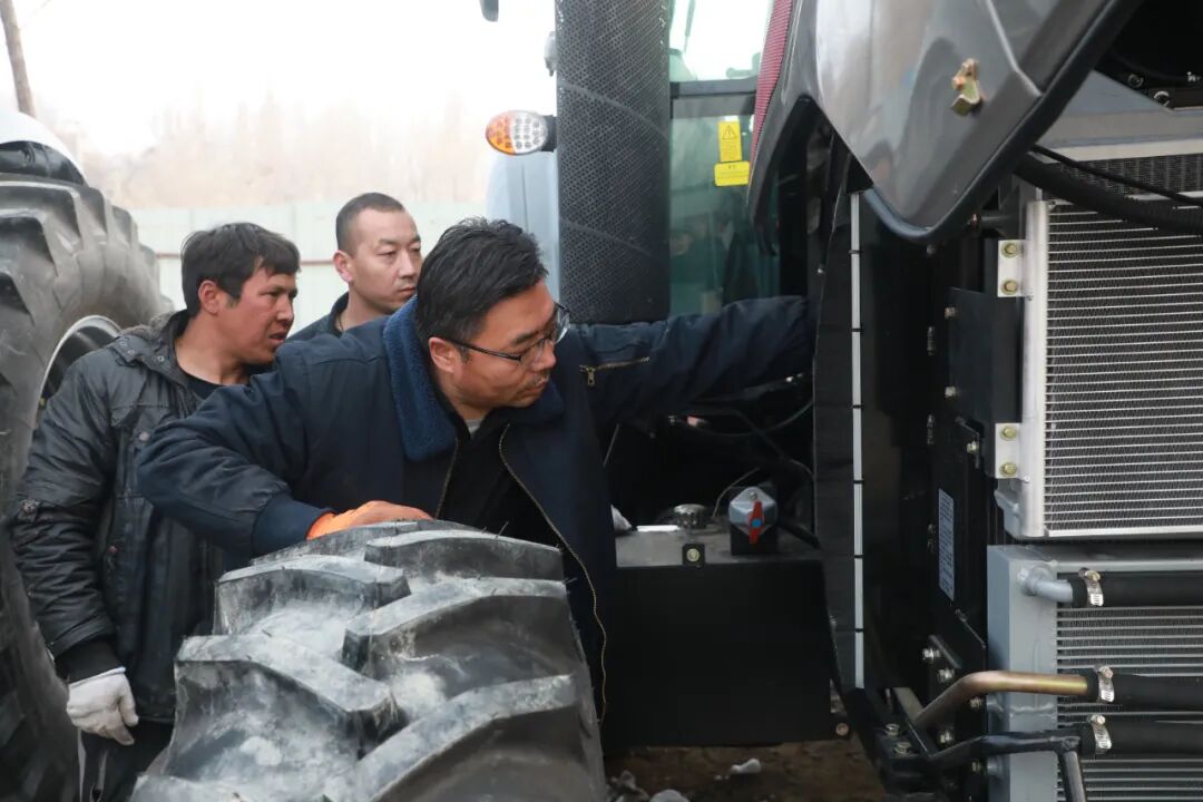 “安装北斗导航设备的拖拉机,配带高性能精量播种机在作业时的误差控制在2厘米内,才能满足高标准农田要求……”12月8日,精河县农业农村机械化发展中心技术服务科工作人员来到新沃德农机销售有限责任公司,围绕各类新型农机装备的性能参数、适配场景展开细致查验,并与经销商、农户交流技术优化方向。