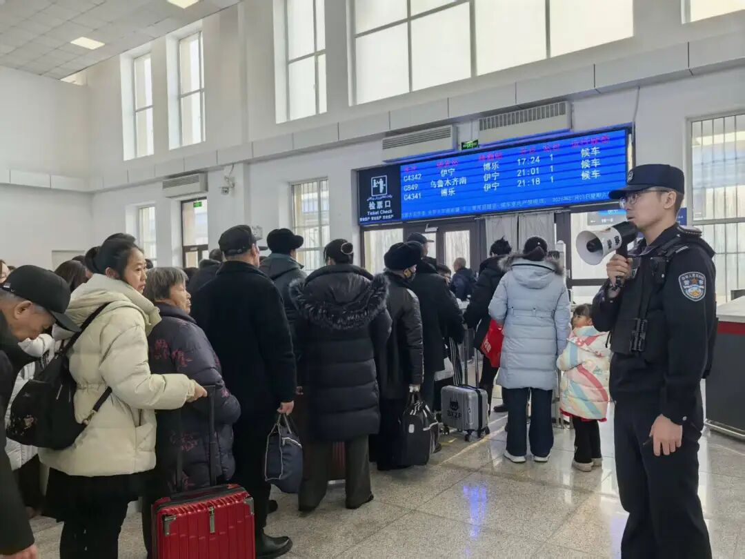 随着元旦假期接近尾声,精河南火车站迎来客流高峰。乌鲁木齐铁路公安局奎屯公安处精河南站派出所与铁路客运部门紧密联动,提前掌握客流情况,以秩序维护、爱民帮扶、咨询引导、反诈防盗及法治宣传等全方位服务,为旅客平安出行筑牢安全防线。