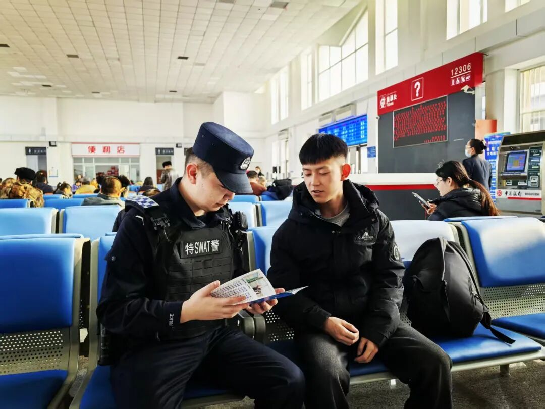 针对返程高峰客流密集的特点,精河南火车站派出所科学调配警力,及时疏导客流、化解矛盾纠纷,维护站区治安秩序。同时,成立青年志愿服务队,为旅客提供购票指引、行李搬运、应急救助等暖心服务,并通过发放宣传手册、现场讲解等方式,向旅客普及反诈防盗窃知识。