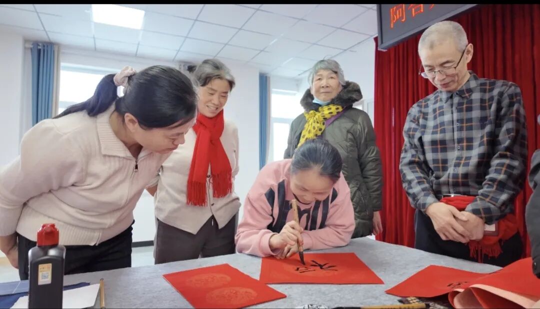 另一边,书法爱好者们挥毫拉开写春联环节的序幕,干部与居民自发结组,围绕“平安”“吉祥”“奋进”等主题,将美好祝愿凝于笔端。不一会儿,一副副红纸黑字的春联铺展开来,墨香伴着欢笑,更添节日气氛。