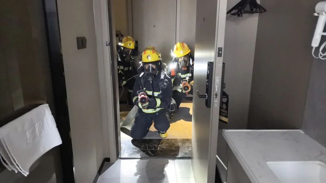 精河县消防救援大队指挥中心接警后,迅速启动高层建筑火灾应急处置预案,调集高层灭火救援专业队前往现场处置,接警途中,同步推送高层建筑火灾安全提示与处置要点,通信员持续与报警人核实现场火情细节。到达现场后,各参战力量遵循“分层疏散、分区控火、立体救援”原则,灭火攻坚组利用室内消火栓系统阻断火势蔓延,救援攻坚组同步开展搜救,疏散引导组联合现场公安民警引导酒店人员有序撤离至安全区域,整个处置过程紧张有序、衔接顺畅。