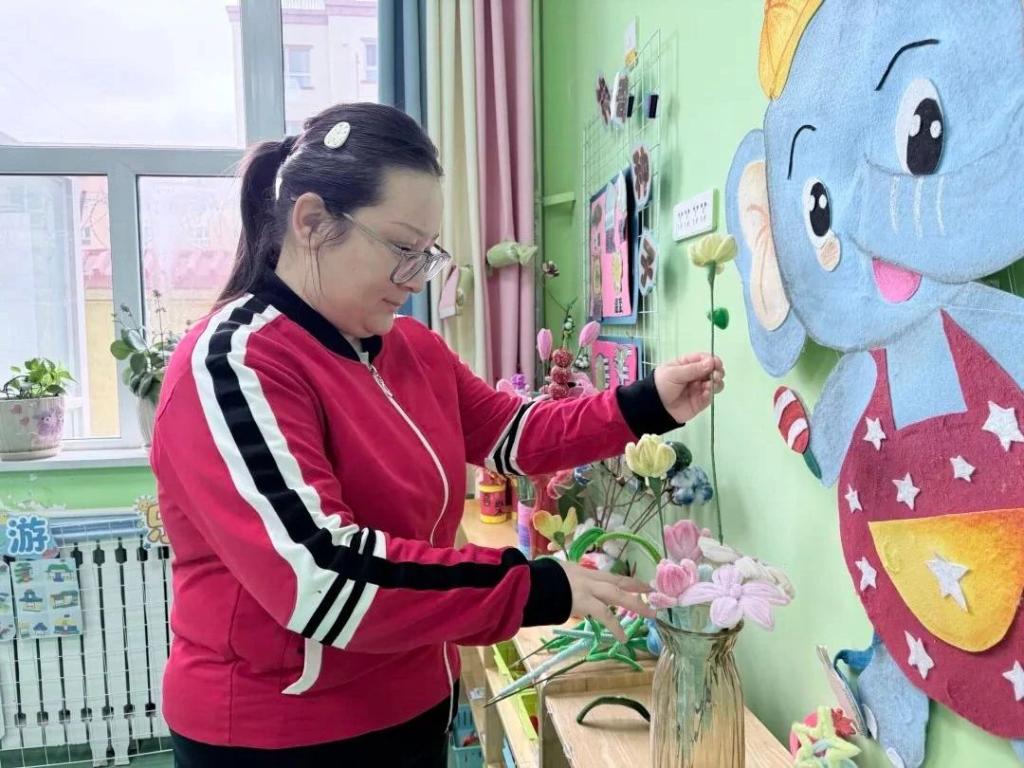 精河县第一幼儿园教师阿力亚木·肉扎洪说:“我们提前一周复工,对校园进行全方位的消毒消杀,精心布置班级环境,同时还梳理了幼儿收心引导方案,希望孩子们开学入园时,能感受到家的温暖。”
