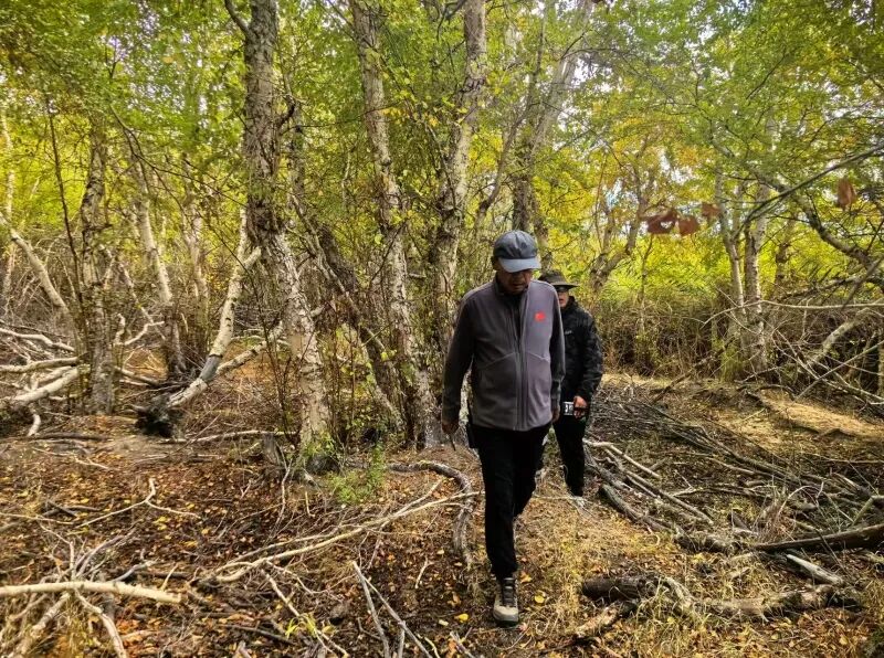 已经在保护区工作21年的东大桥中心管护站站长巴特尔,是这片土地变迁的见证者。他回忆,十多年前,这里的草地被牛羊啃食严重,小叶桦也经常遭到啃食。“后来我们在周围架起围栏、实行禁牧,加上人工和无人机协同巡护,小叶桦林的保护状况大为改观。现在,小叶桦平均高度已达8米至10米,有些胸径超过30厘米。”