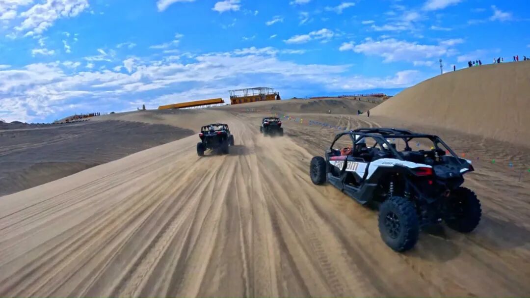随着游客的到来,越野区内引擎轰鸣声此起彼伏,一辆辆越野车、沙漠摩托驰骋在起伏的沙丘间,让游客沉浸式体验极速飞驰的刺激快感。“在沙漠里开越野车太刺激了,尤其是在无垠沙海中极速驰骋,让人不禁感叹沙漠的壮阔。”游客庄青凡体验完越野项目后,难掩兴奋之情。